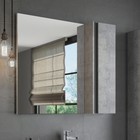 Зеркальное высококачественное полотно с амальгамой на основе серебра. Створка мебельного элемента оснащена петлями с системой плавного закрывания. За дверцей две горизонтальные полки. Зеркало-шкаф универсально, может быть подвешено в правом и левом варианте.