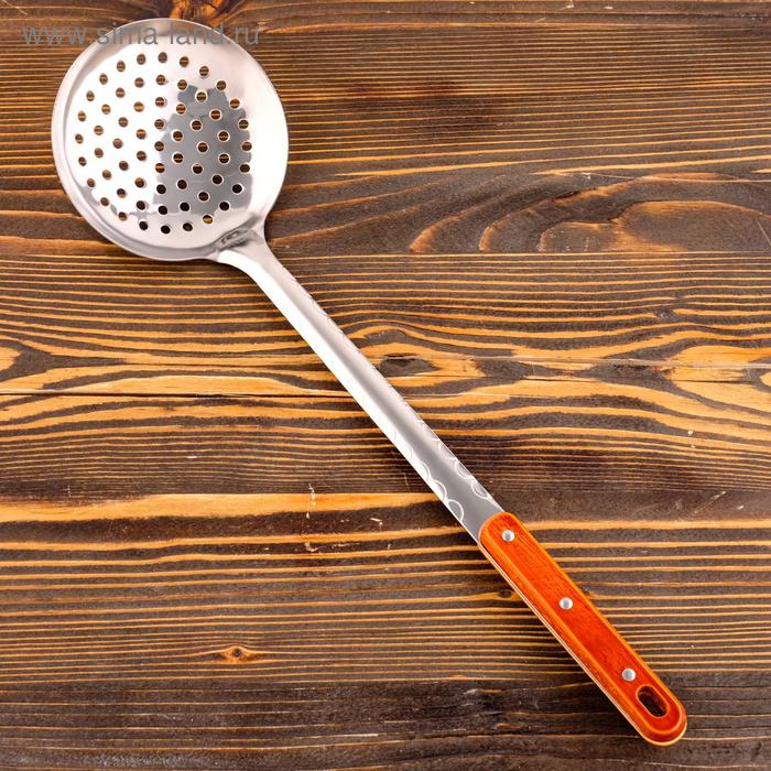 Шумовка с деревянной ручкой — это ключевой инструмент для тех, кто ценит аутентичный вкус и традиционную кулинарную эстетику. Её длина 43 см и диаметр черпала 12 см обеспечивают комфортную работу даже с глубокой посудой.