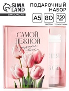 • Классный набор, на подарок самое то. У ежедневника твёрдая обложка.