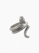 Изящное кольцо в форме змеи — это уникальное украшение, которое сочетает в себе минимализм и выразительный дизайн. Серебристый оттенок металла придаёт изделию холодную глубину и универсальность, позволяя легко сочетать его с разными стилями и образами.