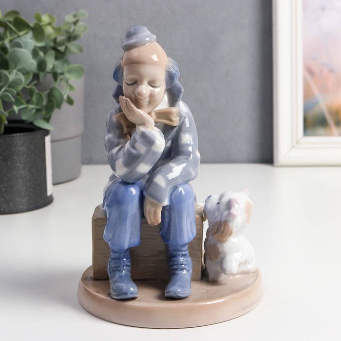 Эта керамическая фигурка клоуна с собакой станет ярким и трогательным украшением вашего интерьера или сада. Её голубой оттенок и глазурованная поверхность подчеркивают детализацию и мастерство исполнения, а высота в 18 см делает её компактным, но заметным элементом декора. Фигурка передаёт атмосферу цирка и дружбы, создавая настроение радости и тепла.