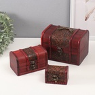 Шкатулка – замечательная вещь, которая пользуется популярностью у любой женщины. Ведь это не только практично, но и красиво. Раньше считалось, что у каждой леди должна быть шкатулка и, причём чем их больше, тем лучше. Это говорило о статусе и женственности. Ведь в них дамы обычно хранят свои украшения и драгоценности. Поэтому представляем набор шкатулок для украшений «Сундучок. Листва», дерево, 3 шт., пусть они заполнятся Вашими сокровищами, изысканной бижутерией, бриллиантами в тысячи карат.