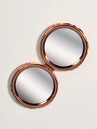 Этот компактный аксессуар сочетает в себе удобство и изысканный дизайн. Металлическая основа придаёт прочность, а отделка искусственной кожей добавляет элегантности. Двойное зеркало с увеличением обеспечивает универсальность — можно быстро проверить общий вид и детально подкорректировать макияж. Благодаря небольшому размеру зеркало легко брать с собой, что делает его незаменимым помощником в повседневной жизни и в путешествиях. Такой аксессуар помогает сохранить уверенность в своём образе в любой момент, подчёркивая заботу о себе и внимание к деталям.