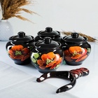 Горшочки для запекания Псковский гончар «Мак на чёрном», набор 4 шт., 850 мл, с ухватом, керамика - Фото 5