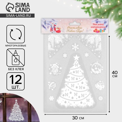 Милые наклейки. Больше подойдут для не большого окна. Украсила окно в рабочем кабинете. Створки шириной примерно 50 см и 40 см. Ёлочка между дед Морозом и Снегуркой с другого набора (арт. 7090163)