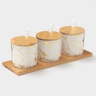 Керамические банки для сыпучих продуктов – яркий и практичный экземпляр функциональной посуды. Ёмкости отлично подойдут для хранения любых сухих продуктов, вы сможете пересыпать в них кофе, чай или сахар. Декоративные банки снабжены крепкой крышкой, которая сохранит свежесть Ваших продуктов и защитит от посторонних запахов и влаги. В комплекте идут ложки.