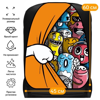 Накидка на сиденье автомобильное Cartage Добрые монстрики, ПВХ, 60×45 см, европодвес