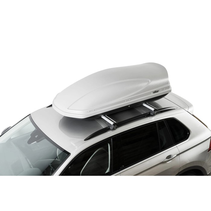 Идеальный бокс для различных видов туризма, в том числе горнолыжного, предназначен для автомобилей средних размеров, выполнен из ABS пластика толщиной исходного листа 5 мм, с UV фильтром. Система двустороннего открывания облегчает доступ к грузу в боксе. Ребра жёсткости на днище бокса полностью снимают эффект скручивания. Дополнительную жёсткость днищу придают стальные вставки . Подъёмные штанги облегчают открывание крышки бокса и одновременно спроектированы так, что надёжно фиксируют крышку в закрытом состоянии. Идеальная геометрия крышки и днища даёт плотное прилегание, что не позволяет проникать грязи и пыли в грузовое пространство, а также обеспечивают лёгкое запирание/отпирание замка. П - образные крепежи - простые и надёжные, бокс устанавливается на багажные поперечины не более чем за 15-20 минут. В качестве более удобного крепежа возможно использование крепежа Koffer C-Grip. В комплекте крепежа также присутствуют ремни для крепления грузов.