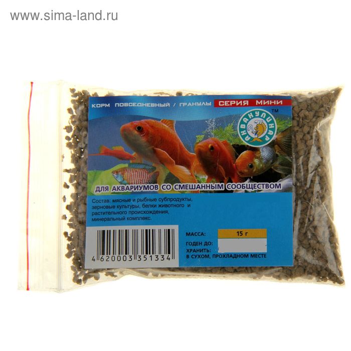 Идеальный корм для мелких и средних аквариумных рыб. Корм отличается высокой усвояемостью, не замутняет воду.