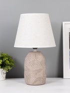 Эта настольная лампа станет стильным акцентом в вашем интерьере, добавляя уют и элегантность. С высотой 35 см и серым керамическим основанием, она идеально впишется в любое помещение, будь то рабочий стол или прикроватная тумбочка, создавая атмосферу спокойствия и гармонии.