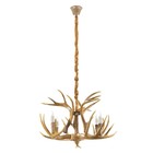 Подвесная люстра с декоративной формой «рога» рассчитана на освещение помещений до 12 м². Конструкция без плафонов с направлением света вверх создаёт мягкую отражённую подсветку и визуально расширяет пространство. Коричневое основание с текстурой под натуральные материалы хорошо вписывается в интерьеры в стиле кантри, рустика и сканди.