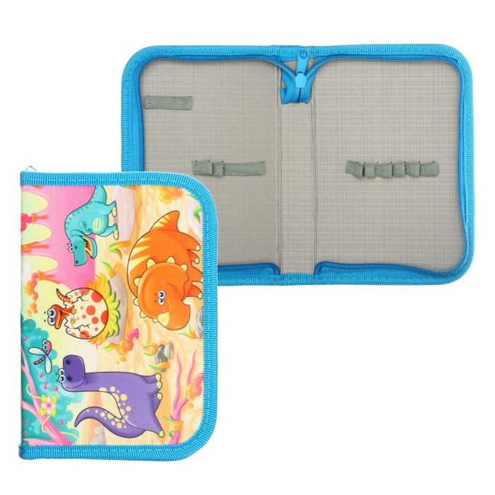 Пенал школьный на молнии, ткань 13×19.5 см «Динозаврики», 1 секция
