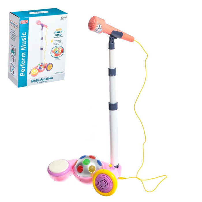 Микрофон на стойке поможет малышу петь свои любимые песни. К изделию можно подключить смартфон, MP3-плеер, iPod. Громкость звука регулируется через подключённое устройство. Микрофон имеет функцию усиления голоса.