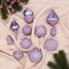 Набор сиреневых однотонных ёлочных шаров в советском стиле состоит из одиннадцати пластиковых украшений. Компактный комплект дополняет праздничный интерьер, придавая ему нюансы классической новогодней эстетики.