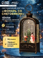 Светодиодная фигура «Фонарь со снеговиком» 10.2×23×5.8 см, пластик, от батареек ААх3, USB, свечение тёплое белое