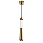 Строгий цилиндр в зелёном и золотом — свет для тех, кто ценит чёткие формы. Подвесной светильник «Леонтия» — это современный источник света с плафоном из металла. Конструкция на регулируемом подвесе создаёт направленный поток для локального освещения.
