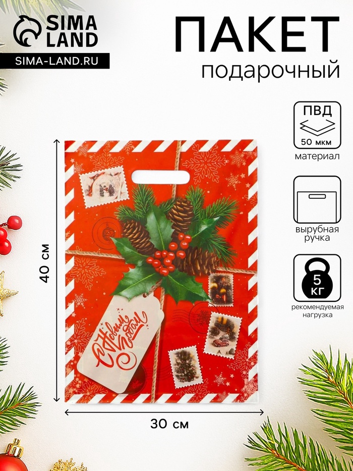 Пакет подарочный «Новогодняя посылка», полиэтиленовый с вырубной ручкой, 30×40 см, 50 мкм