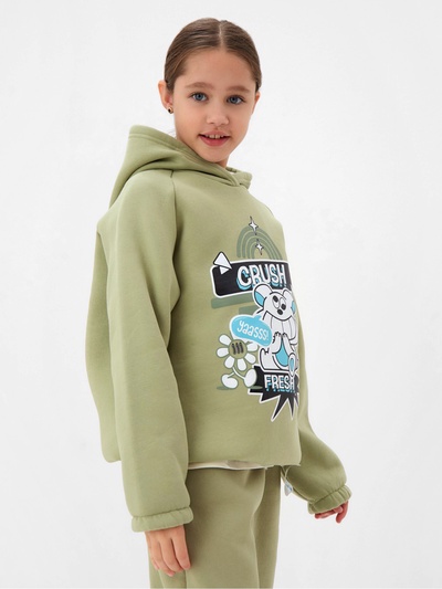 Толстовка (худи) детская MINAKU: CRUSH, оливковая, рост 158 см