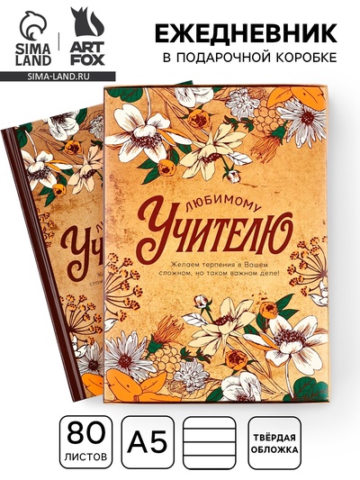 розницаЕжедневник недатированный, А5, 80 л., в подарочной коробке, твердая обложка «Самому лучшему учителю»