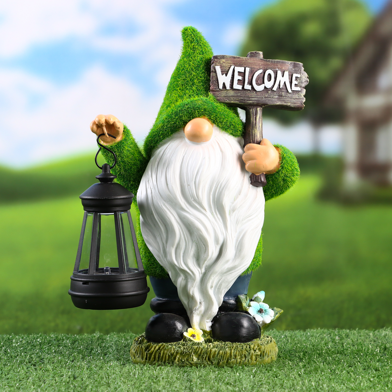Садовые фигуры с фонарём — это оригинальное решение для освещения участка. Расположите такие изделия вдоль дорожки: они обязательно пригодятся в тёмное время суток.