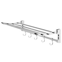 Штанги для полотенец, полки, дозаторы для мыла и крючки для халатов станут завершающими штрихами в интерьере ванной комнаты. Они помогут организовать пространство так, чтобы все необходимые принадлежности были под рукой. Важно заметить, что хромированные изделия выдержат бо́льшую нагрузку по сравнению с пластиковыми и деревянными предметами.