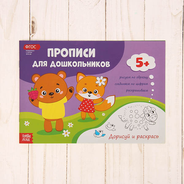 — На качество бумаги: листы не должны просвечивать, быть слишком тонкими. Если пропись в клетку или линейку, следите, чтобы элементы фона были крупными, потому что дошкольник ещё не готов к мелкому письму в силу возраста. Необходимо, чтобы в тетради был образец со стрелочками, показывающий правильное начертание цифр и букв.