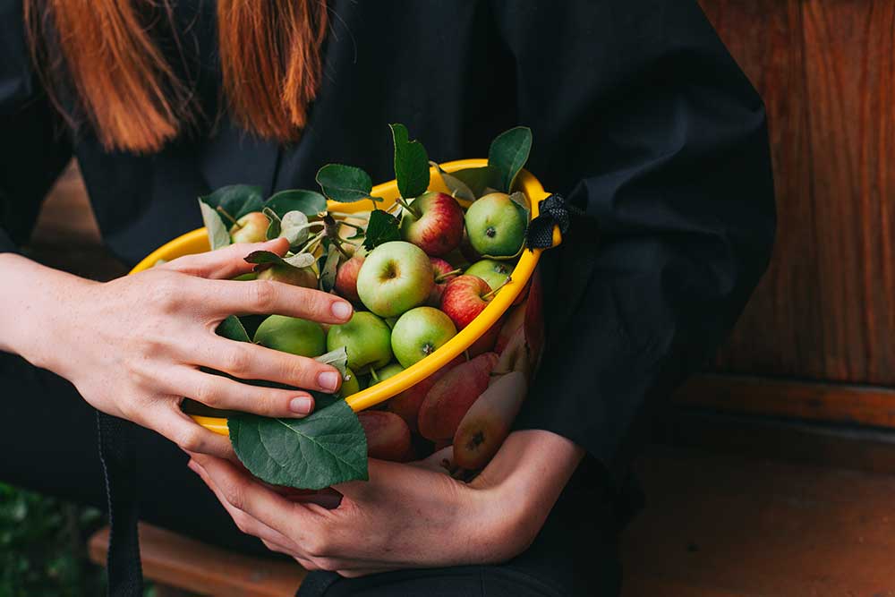 - Обращайтесь с урожаем бережно уже на стадии сбора: срывайте яблоки аккуратно и кладите в ведро. Больные, повреждённые и червивые плоды сразу выкидывайте.