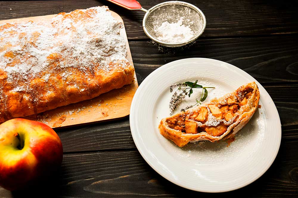 - Разогрейте духовку до 180 градусов, поставьте в неё противень со штруделем и оставьте на 40 минут.