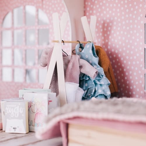 Маленькие принцессы любят, когда их игрушки носят красивые платья и костюмчики. Одежда понадобится разная, ведь куклы будут ходить друг к другу в гости, работать в саду, загорать на пляже и устраивать праздники. Для каждого случая нужен особый наряд. С наборами «Гардеробная» вы сошьёте коллекцию одежды и обустроите в домике комнату для её хранения.