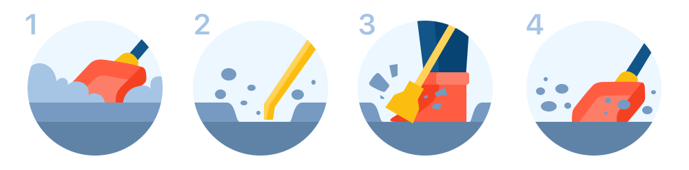 - Откидывайте осколки лопатой по мере необходимости.