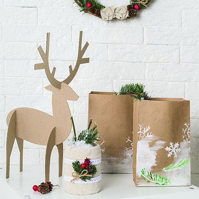 Традиционную ёлку можно встретить почти в каждом доме. А что если немного разнообразить декор? Соберите новогодний домик, украсьте дверь венком из веток, а на подоконниках поселите милых оленей.