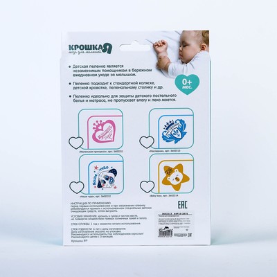 Их можно постелить на пеленальный столик во время визита к врачу или чтобы поменять подгузник. Пелёнки «Крошка Я» сделаны из мягкого текстиля и ПВХ, которые безопасны и комфортны для нежной кожи малыша. Расцветку можно подобрать для девочки и мальчика.