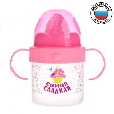 Это подарок скорее на вырост, так как поильники предназначены для детей от 5 месяцев. Такие ёмкости позволят безболезненно перейти от материнского молока к более взрослой пище. Твёрдый носик поильника поможет крохе уменьшить неприятные ощущения в период прорезывания зубов.