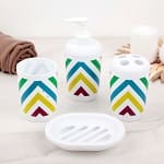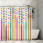 Сделайте акцент на деталях: подберите аксессуары и шторы для ванной комнаты с геометрическими принтами и красочные коврики с яркими абстрактными рисунками.