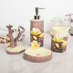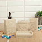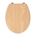 В оформлении должны доминировать натуральные тона: бежевый, ореховый, персиковый, кофейный, древесный. Занавески подойдут светлых оттенков, а сиденья для унитаза могут быть из дерева: природные материалы будут отсылать к сельской теме.