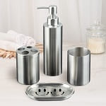 Ванная комната, выполненная в этом стиле, предполагает наличие стекла, хромированного металла и пластика. Вам точно понадобятся металлический ёршик для унитаза и стильные зеркала цвета хром.