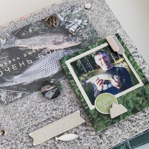 Одна из новых коллекций материалов для творчества — «На рыбалку». В наборе есть скрапбумага (30,5 × 30,5 см), тематические наклейки и многое другое. Мы уверены, что ваш рыбак оценит внимание к его хобби, а специальный альбом станет приятным дополнением подарка на