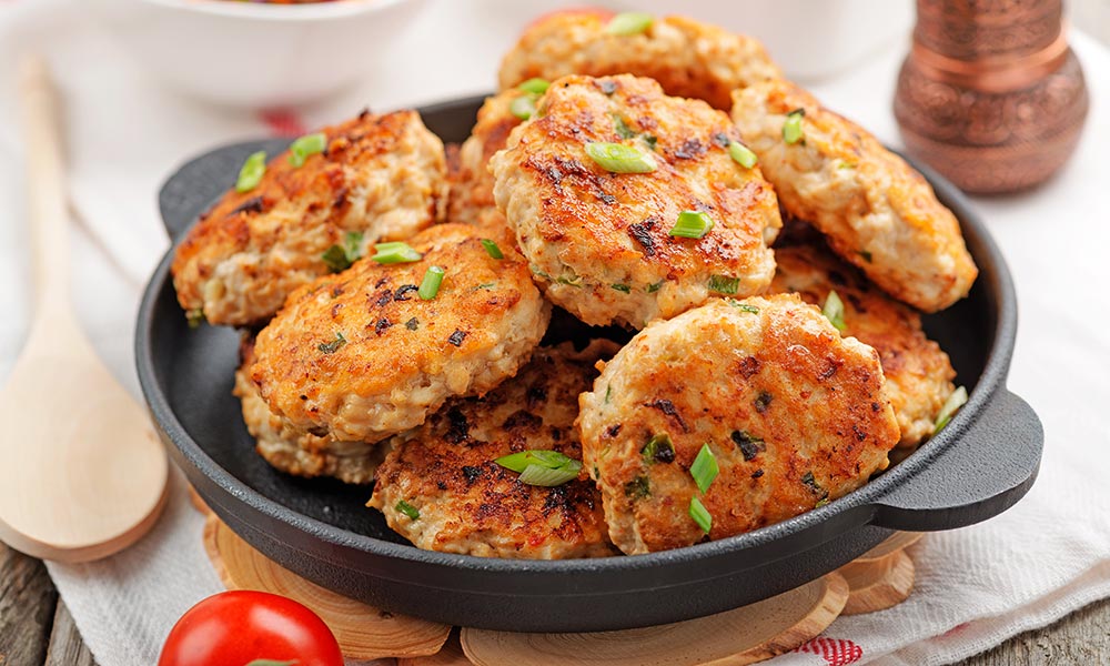 - Разогрейте немного масла на сковороде. Столовой ложкой выкладывайте в неё фарш, как обычные оладушки. Обжарьте с двух сторон.