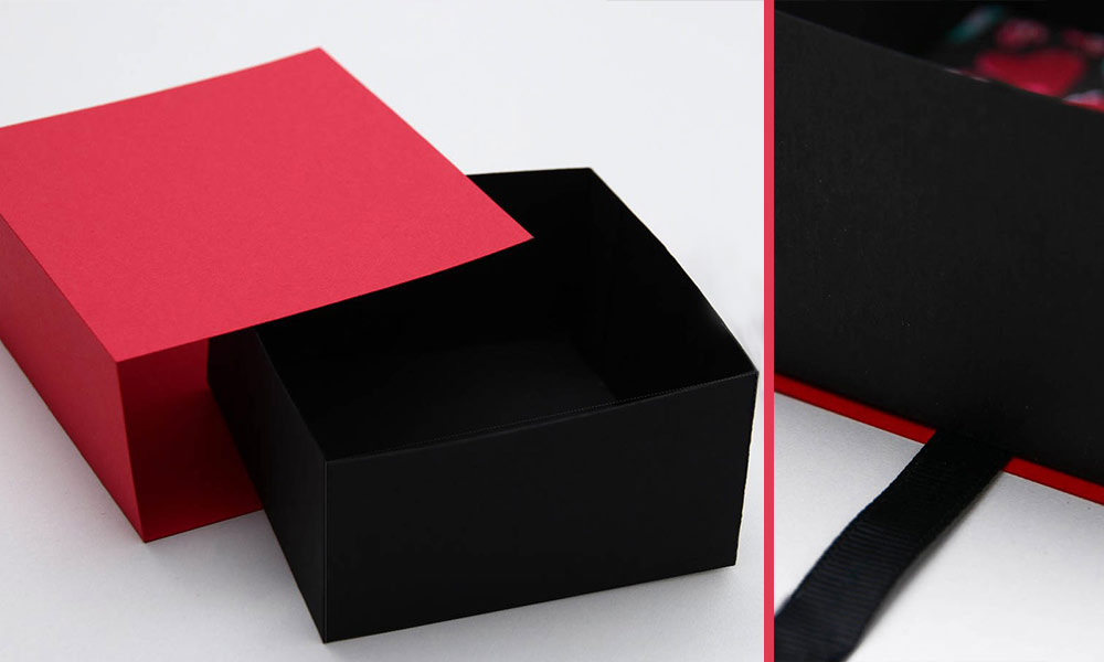 ② Склейте их и прикрепите атласную ленту к крышке и основанию шкатулки.