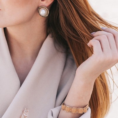 Серьги, булавки, кольца для платков... Жемчуг уместен везде. Чтобы украшения оттеняли глаза и лицо в целом, выбирайте их по своему цветотипу. Например, для «весны» подойдут бусинки цвета слоновой кости, для «зимы» — белого и чёрного, для «осени» — барочный жемчуг с золотистым подтоном, а для «лета» — розовый, холодного подтона.