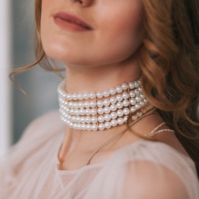 Одна из икон стиля XX века — жена 35-го президента США Жаклин Кеннеди — считала, что «жемчуг всегда уместен». Причём зачастую она носила украшения из искусственного камня. Чтобы создать образ, как у первой леди, выбирайте классические нитки фальш-жемчуга в 2–3 сложения, чокеры и крупные серьги.