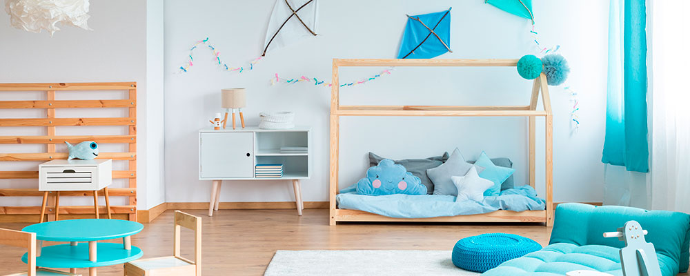 Цвета умиротворения и лёгкости. Неудивительно, что они очень популярны — причём не только в дизайне интерьеров. Голубой и синий (особенно глубокий и насыщенный) помогают снять стресс, улучшают сон, расслабляют. Активным деткам они принесут покой. Однако у медали есть обратная сторона: обилие голубого может привести к рассеянности и витанию в облаках, а тёмно-синего — к унынию и тоске. Поэтому окружать ребёнка этими цветами нужно дозированно.