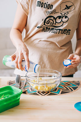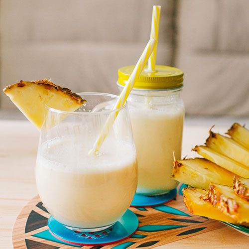Нарежьте ананасы и заморозьте их в йогурте. |
