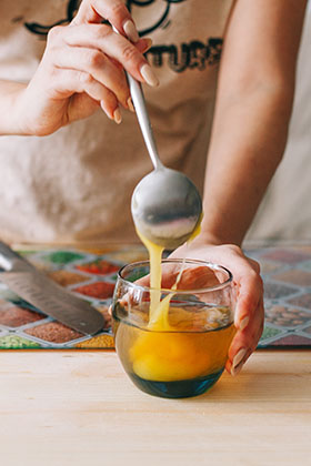 Добавьте к сладкой смеси сок лайма и мёд. |