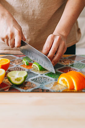 Помойте апельсины и лимоны, затем нарежьте их полукольцами. |