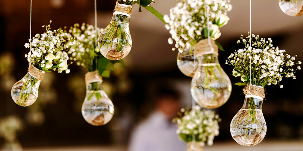 В качестве альтернативы можно подвесить декор или цветочные кашпо под потолок. Тогда атмосфера станет более воздушной. Только аккуратнее: прикрепите декор на достаточной высоте (чтобы никто не стукнулся) и очень крепко.