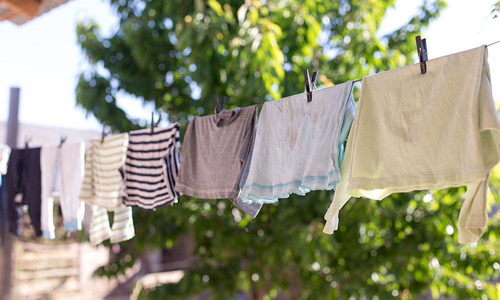 Поработав на участке, вы можете вывозиться так, как никто и никогда. Поэтому стирать придётся часто. Нужен стандартный набор: тазик, верёвка, прищепки.