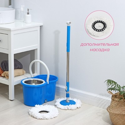 Набор для уборки: швабра, ведро с металлической центрифугой, запасная насадка из микрофибры