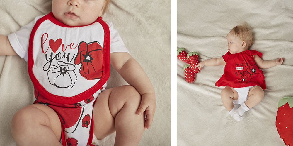 С этой коллекцией ваша кроха всегда будет в центре внимания. Яркое сочетание красного и белого никого не оставит равнодушным.