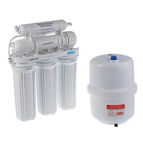 Фильтр обратного осмоса. Такие используют при производстве бутилированной воды. Устройства эффективны благодаря особой мембране: она впитывает воду и больше ничего — все примеси остаются с другой стороны.